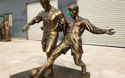 玻璃鋼踢足球雕塑,校園運動人物雕塑廠家