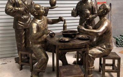 玻璃鋼劃拳喝酒人物雕塑,飯桌吃飯情景雕塑