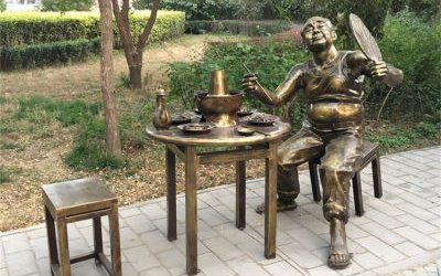 玻璃鋼仿銅人物店小二雕塑,古代迎賓人物雕塑