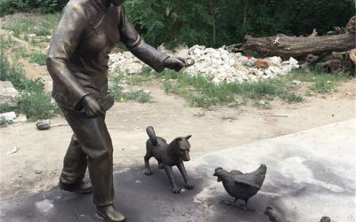 玻璃鋼婦人喂雞雕塑,農(nóng)村喂雞場景雕塑加工廠