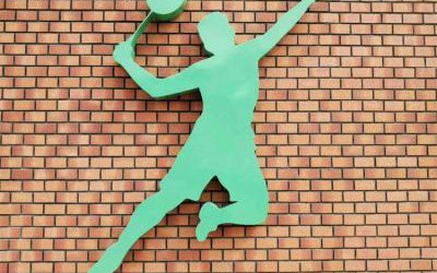 不銹鋼打羽毛球人物雕塑,剪影體育運動員雕塑