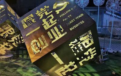 不銹鋼發光立方體雕塑,創意燈光魔方雕塑