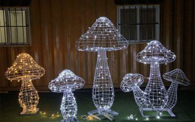 抽象發光蘑菇雕塑,不銹鋼絲編織蘑菇雕塑加工定做