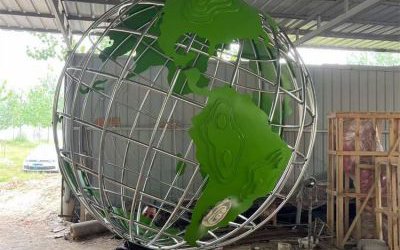會轉動的大型不銹鋼地球儀雕塑實物圖