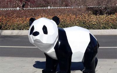 不銹鋼熊貓雕塑案例分享 戶外幾何熊貓實拍圖