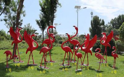 火烈鳥,這類優雅而神秘生物,因其鮮艷的淺粉色翎毛而著稱。在陽光下,他們像絢爛的云彩,徜徉在湛藍的湖面上,時而低頭尋食,時而翩翩飛舞?;鹆银B十分苗條,頸部可以靈活晃動,從而更好地在水里尋找食物。他們主要以藻類跟小甲殼為食,含有一種叫做類胡蘿卜素的天然色素,正是這種色素賦予火烈鳥迷人色調。觀眾紛紛駐足,沉浸在這幅美麗的畫面中。他們被不銹鋼火烈鳥雕塑吸引,一個接一個地取出手機相機,拍下這一刻的感動。有的人靜靜的坐在河邊,凝望火烈鳥的倒影,靜靜的思考著生命的意義和存在的價值。火烈鳥雕塑將自然和諧和人類文藝創作融為一體,成為大家交流心里和情感的橋梁。它向世界傳遞著美的力量,告誡我們愛惜一邊的每一分鐘,愛惜與自然和生命連接的迷人感受。